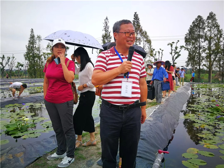 陳煜初副總裁給學(xué)員們現(xiàn)場講解睡蓮、荷花等水生植物相關(guān)知識